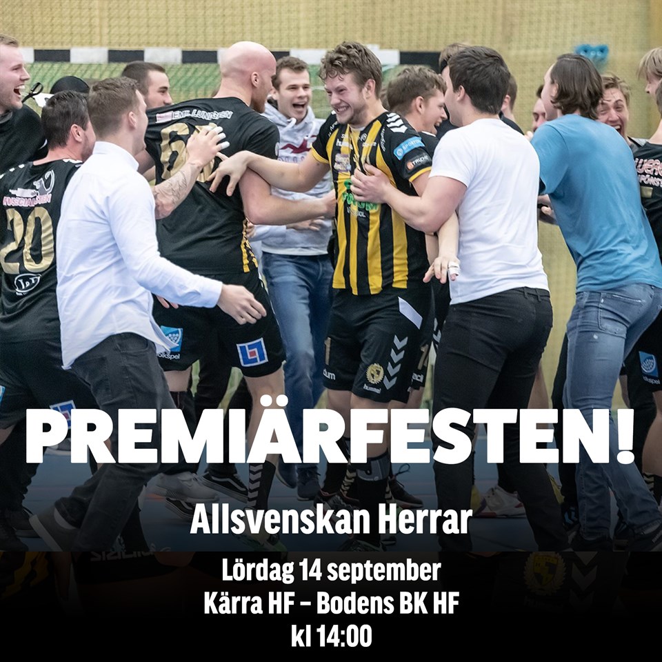 190914 Herrallsvenskan Kärra HF - Bodens BK HF 31-24 (17-9) Matchbilder Handboll på bild och film (Marek Hom), Kärra HF Flickr (Evy Knoph) Det blev en klang&jubel föreställning när Kärras herrar gjorde comeback i Allsvenskan. Ett säkert spelande hemmalag dominerande matchen fullständigt och gav Norrbottenslaget inte skuggan av en chans. Man var starkare på alla positioner och PA Lindfeldt kunde tidigt rulla runt på laget. Många fina insatser i de gulsvarta, men vi höjer några lite extra: 🐝🐝🐝 Marcus Erixon var formidabel i kassen. 🐝🐝 Joel Järlfors visade stort spel och kommer att betyda mycket för herrarna denna säsong. 🐝 Filip Taponen gjorde ”snabbcomeback” och var grymt effektiv. Målgörare Kärra HF: Tobias Jademan 7, Filip Taponen 5, Jacob Schmidinger 4, Joel Järlfors 3, Jonathan Berg 3, Isak Boström 3, Sebastian Wiik 2, Marcus Aggenfjord 2 ochMarcus Grüner 2. Publik: 338 Nästa match går mot HIF Karlskrona kommande torsdag. Skribent: Thomas Willram