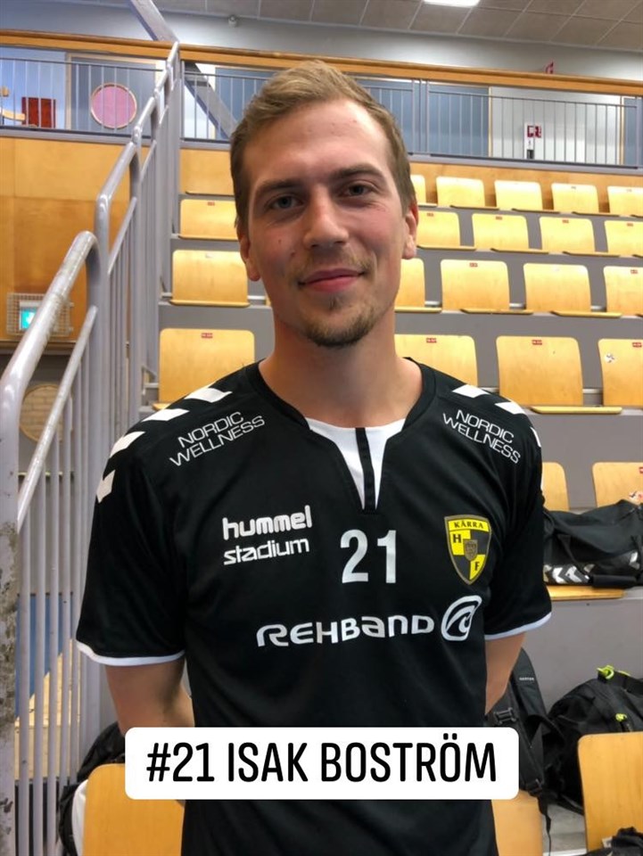 Nästa nyförvärv som vi tar pulsen på inför Herrarnas premiär hemma mot Boden lördag 14 september kl 14:00: Varmt välkommen till Kärra ännu en gång - Isak Boström! Och vem är Isak? - Jag är 25 år och med moderklubb i Lindesberg som vi möter senare i höst. Kommer till Kärra efter 4 spänstiga år i Hallby där jag spelat med bl a Joel Järlfors. Har lirat handboll sedan 10-års åldern samt spelat en del fotboll och tennis. Vi har ju sett dig mycket bidragande och imponerande i årets träningsmatcher hittills på V6, men för de som missat detta - hur beskriver du själv Isak handbollsspelaren med 3 ord? - Kontringsstark, spänstig och attityd Vad tycker du om Kärra så långt? - Ett riktigt gott gäng med härliga gubbar och med god stämning i kring. Engagerande strävan att prestera som med ovan gör allt till en mycket bra kombo! Dina intryck av lagkompisarna: Någon spelare i laget som överraskat dig särskilt och gjort stort intryck? - Jag visste inte att Joel Järlfors kan spela ut efter 4 år tillsammans i Hallby... Vem har sjukaste humorn? - Hahaha, Tobias Jademan toppar! Vem är eller tror sig vara smartast i omklädningsrummet? - Erik Nylén är vass på detta område också. Vem är precis alltid positiv även när det ösregnar som mest? - Det finns bara en solklar: Marcus Grüner. Vem är hetast? - Sebastian Wiik är snyggast! Hur ser du på våra möjligheter i Allsvenskan? - Vill ha oss som ett riktigt farligt hemmalag där motståndarna hatar att komma hit. Vi är här för att etablera oss! Vad tycker du att din nya hemmapublik kan förvänta sig att du bidrar med? - Jag trivs med snabb handboll, är en vinnarskalle som gör och ger allt för att vi vinner. Kommer också att bjuda på en och annan delikatess! Vad slipar du extra på vägen in till premiären? - Jag utvecklar skottarsenalen och finslipar avslutningslägena. Ett megastort lycka till #21 Isak Boström!