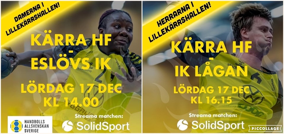 Lö 17 dec 14.00 Damallsvenskan Kärra HF - Eslövs IK Lö 17 dec 16.15 Herr 1 södra Kärra HF - IK Lågan Härligt dubbelarrangemang på lördag i Lillekärrshallen då damer & herrar står inför mycket viktiga kamper. Stötta föreningen genom att köpa våra digitala 50/50-lotter på https://clubs.yourclubmate.com/karrahf/?onSite=true, även om man inte kan komma på matchen. Vinnaren dras i slutet av matchen, vinsten swishas, det går att se vinstnummer och summa efter avslutat lotteri. Vi syns där Kan ni inte komma? Följ via Handbollplay (SolidSport), där kan du teckna abonnemang och stödja Kärra HF Damer https://handbollplay.se/karrahf-damer här kan du teckna abonnemang och stödja Kärra HF Herrar: https://handbollplay.se/karrahf-herrar (Genom abonnemangen får man tillgång till alla lags matcher i respektive serie). Följ via livescore