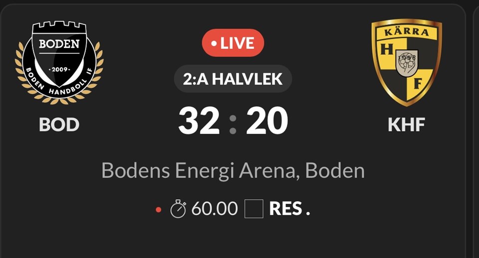 221020 Damallsvenskan Boden Handboll - Kärra HF 32-20 (12-9) Det blev tyvärr ingen särskilt spännande match när Kärra intog Boden Arena. Denna dag var hemmalaget bättre på allt och Kärra var aldrig egentligen nära, trots att matchen var målmässigt jämn i ca 25 min. Boden är ett givet topplag i allsvenskan och med sitt oerhört rutinerade lag, så måste man var fullständigt på plats, för att kunna röra dem på bortaplan. lyfts för Elsa Aling och Meja Bernvid som gjorde godkända insatser. Nu gäller det att skaka av sig denna match och ta lärdom av det man behöver. Chans till revansch redan på söndag kl 14:00 då AIK gästar Lillekärrshallen. Målgörare Kärra HF: Meja Bernvid 5, Alma Mikaelsson 3, Cecilia Tillman 3, Elsa Aling 3, Linn Andersson 2, Maria Sundin 1, Lovisa Ekberg 1, Lina Cardell 1 och Matilda Antonsson Hjälmedala 1. Skribent: Thomas Willram