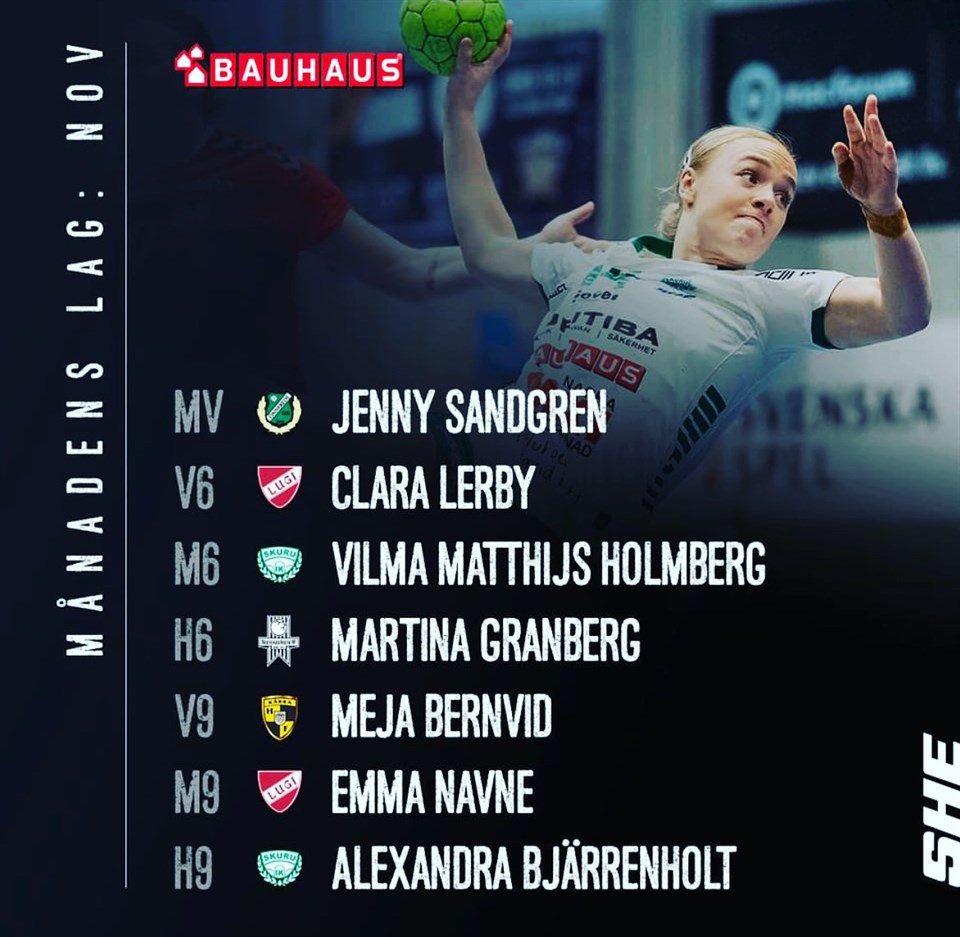 Meja Bernvid, vår unga V9a är med i @shehandboll månadens lag för november. En härlig bekräftelse att hårt arbete lönar sig. Grattis @mejabernvid 💛.