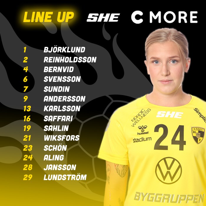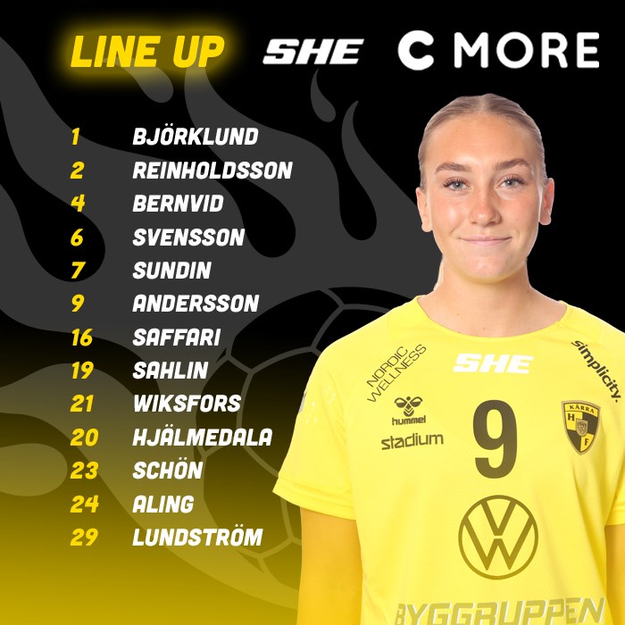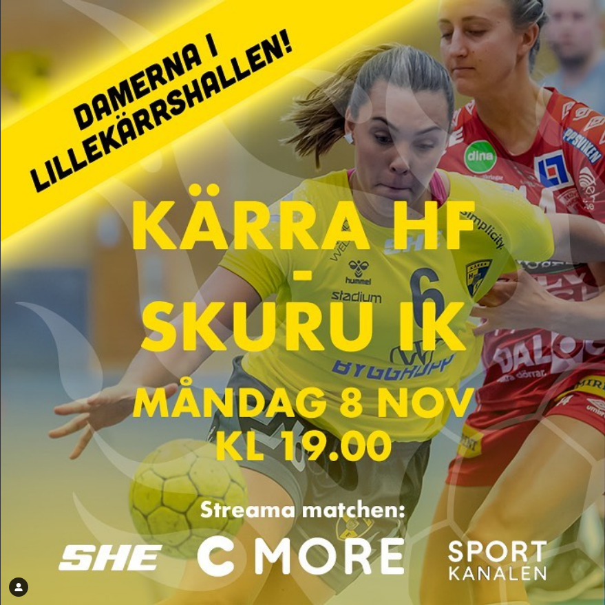 Följande spelare tar sig an utmaningen att möta Sveriges just nu bästa lag @skurudam ikväll klockan 19:00 i @shehandboll . Tunn trupp i Kärra HF idag (vi stryker även Sahlin), men man lirar alltid med det man har. Vi noterar att @matildaantonssoon gör comeback efter långt skadeuppehåll och det blir debut i SHE. Så ta dig till Lillekärrshallen ikväll eller se matchen på @cmoresport .