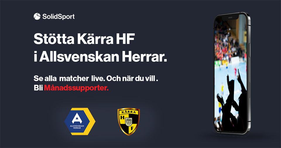 Premiären i Herrallsvenskan är söndag 19 sep kl.16.15 borta mot Amo HK Få tillgång till alla våra matcher som livesänds på Solidsport under säsongen, samtidigt som du är med och stöttar vårt lag ekonomiskt. https://solidsport.com/karrahf-herrar https://solidsport.com/karrahf-herrar/monthly_supporter Som Månadssupporter får du tillgång till samtliga matcher i Herrallsvenskan. Tack för din support!